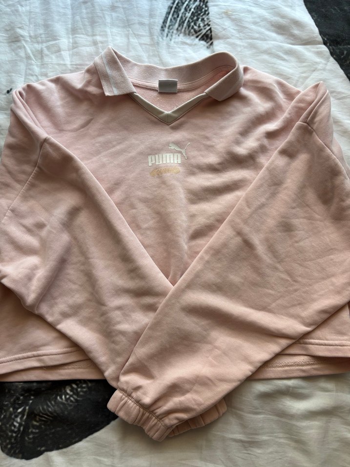 Pembe uzun kollu kısa sweatshirt, yuvarlak yaka ve rahat kesime sahip. Yumuşak ve sıcak kumaştan üretilmiş, günlük kullanım için şık ve sade bir görünüm sunar.