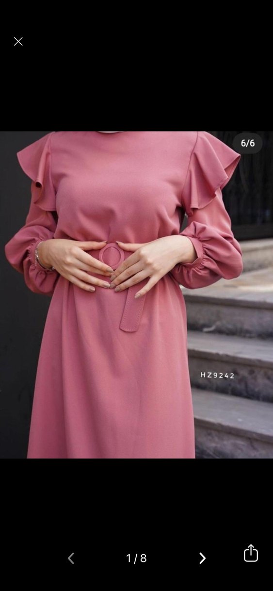 Pembe Uzun Kollu Kemerli Uzun Elbise