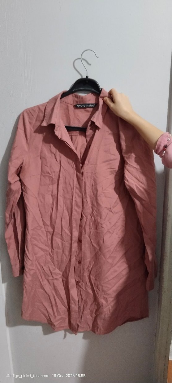 Pembe pastel renkte keten uzun gömlek