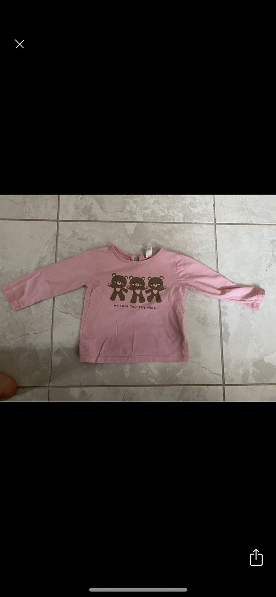 Baskılı ayıcık desenli, düğmeli, uzun kollu pembe kız çocuk tişörtü, rahat kesim ve yuvarlak yaka ile.