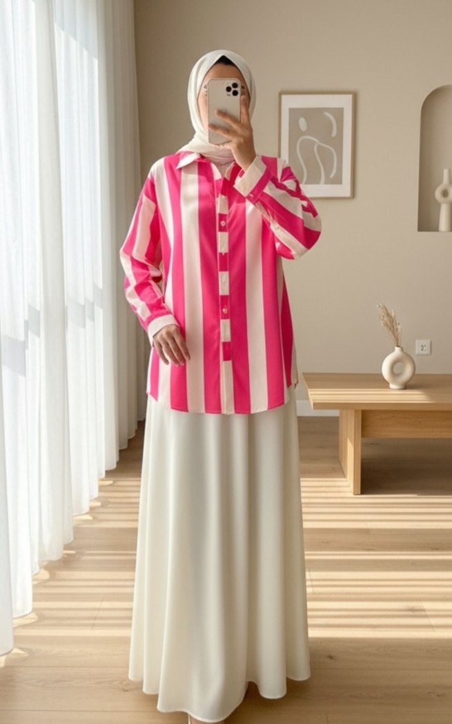 Pembe Uzun Kollu Salaş Kadın Tunik