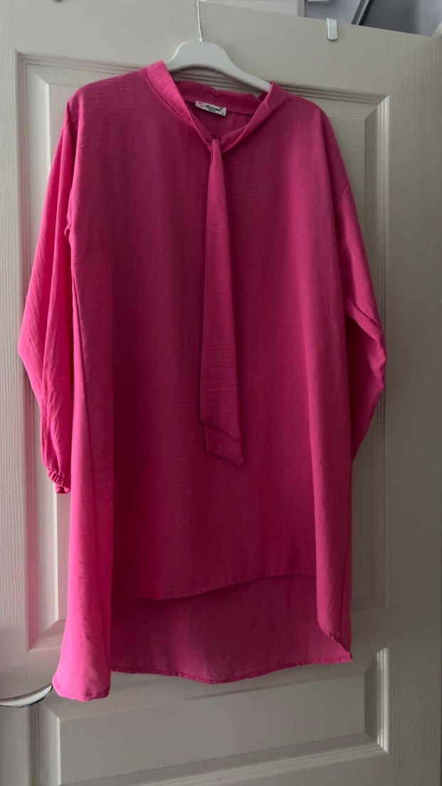 Pembe Uzun Kollu Salaş Kadın Tunik