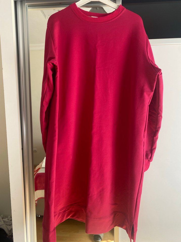 Pembe uzun kollu salaş tunik, drapeli tasarım ve yuvarlak yaka ile dikkat çeker. Yumuşak ve sıcak kumaştan üretilmiştir, rahat günlük kullanım için uygundur.