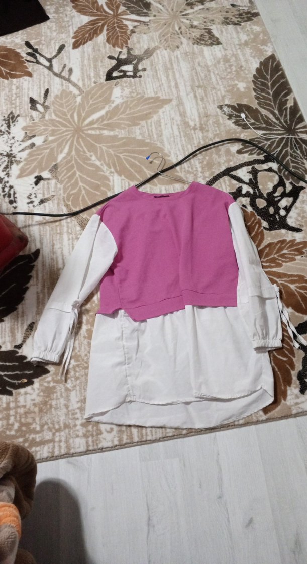 Pembe Uzun Kollu Salaş Kız Bluz