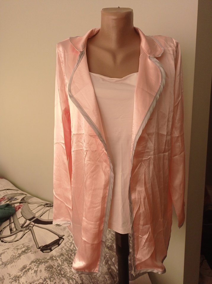Pembe Uzun Kollu Saten Kadın Ceket