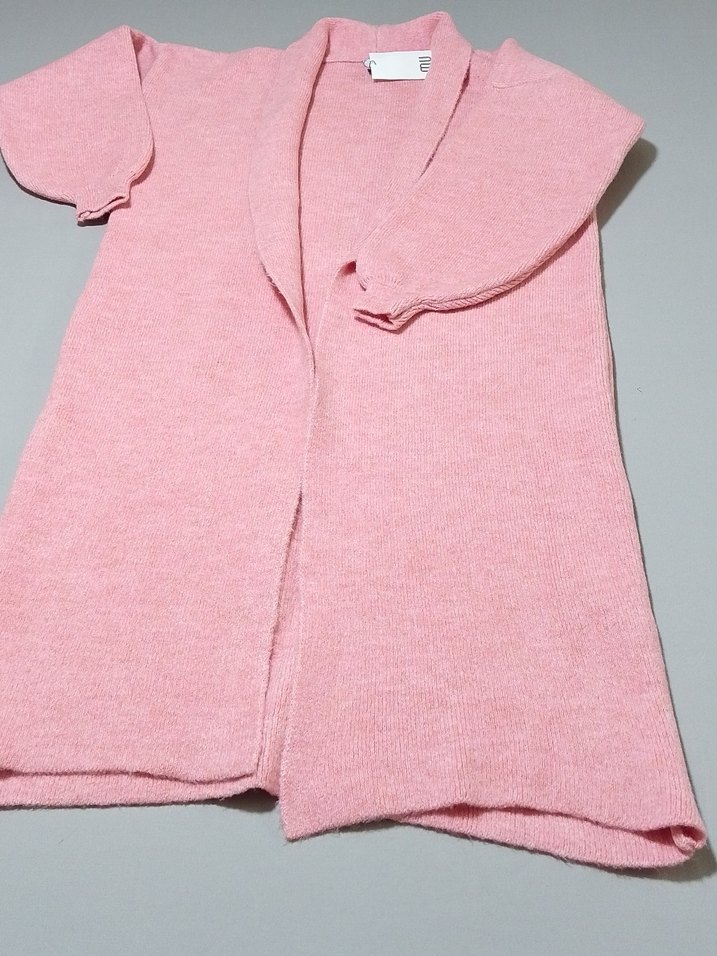 Pembe uzun kollu, yumuşak fleece kumaştan, triko dokulu ve geniş kesim hırka. Günlük kullanım için uygundur.