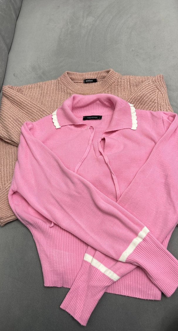 Pembe Uzun Kollu Triko Kadın Kazak