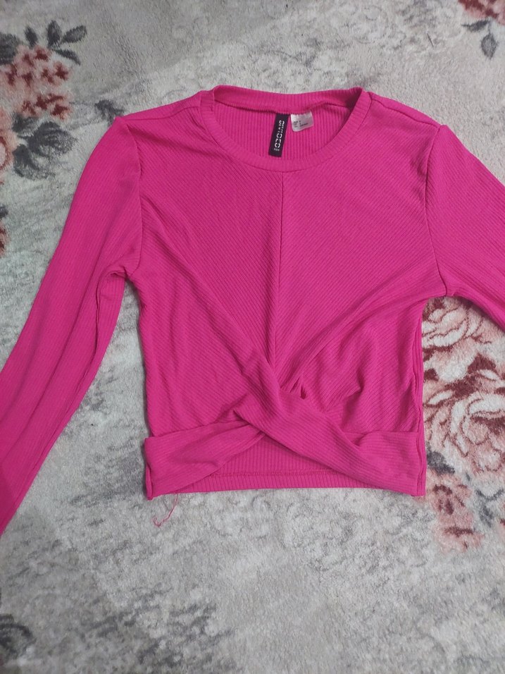 Pembe renkli, uzun kollu,Dar kesimli ve bisiklet yaka, desen içermeyen sokak stiline uygun rahat bir parça.