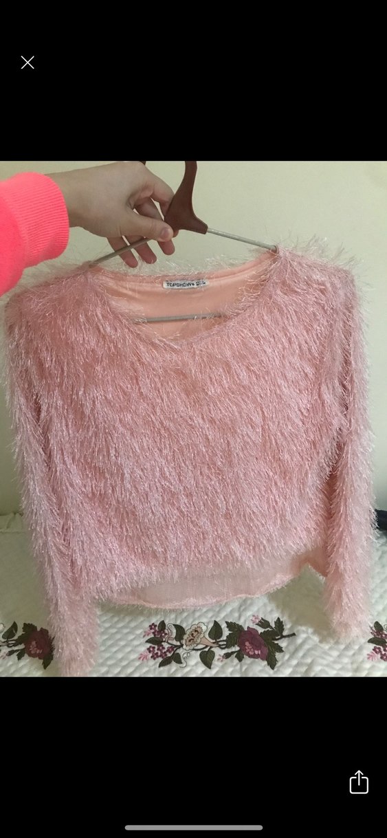 Pembe Uzun Kollu Tüylü Triko Kazak