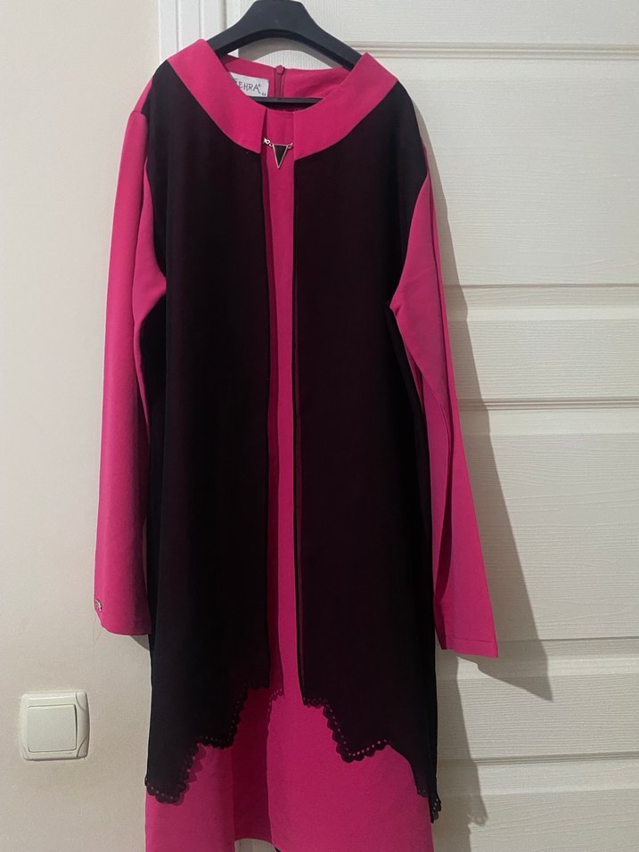 Uzun, pembe renkli ve regular fit tunik , drapeli detaylar ve notched yaka ile ofis kullanımına uygun.