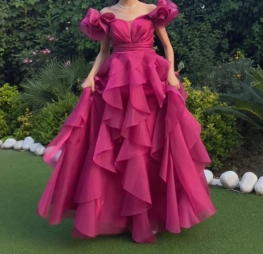 Pembe uzun abiye elbise, fırfırlı detaylar ve tekne yaka ile tasarlanmıştır. şık düğünler davetler için uygundur. 34 beden (168/51 kilo giymiştir) içten daraltma yapılmıştır istenirse genişletilebilir şekilde. Sadece bir kere düğünde giyilmiştir bir sıkıntı yoktur.