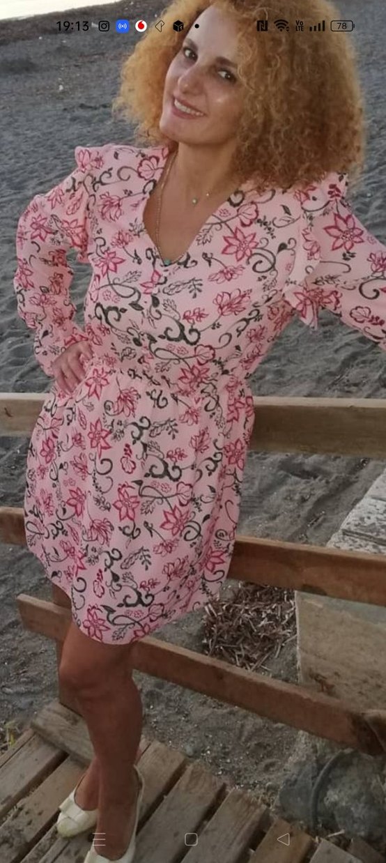Pembe renkte, V yakalı ve uzun kollu bohem tarzda midi elbise. Rahat kesimli, baskılı ve dantel detaylıdır. Günlük kullanıma uygun.