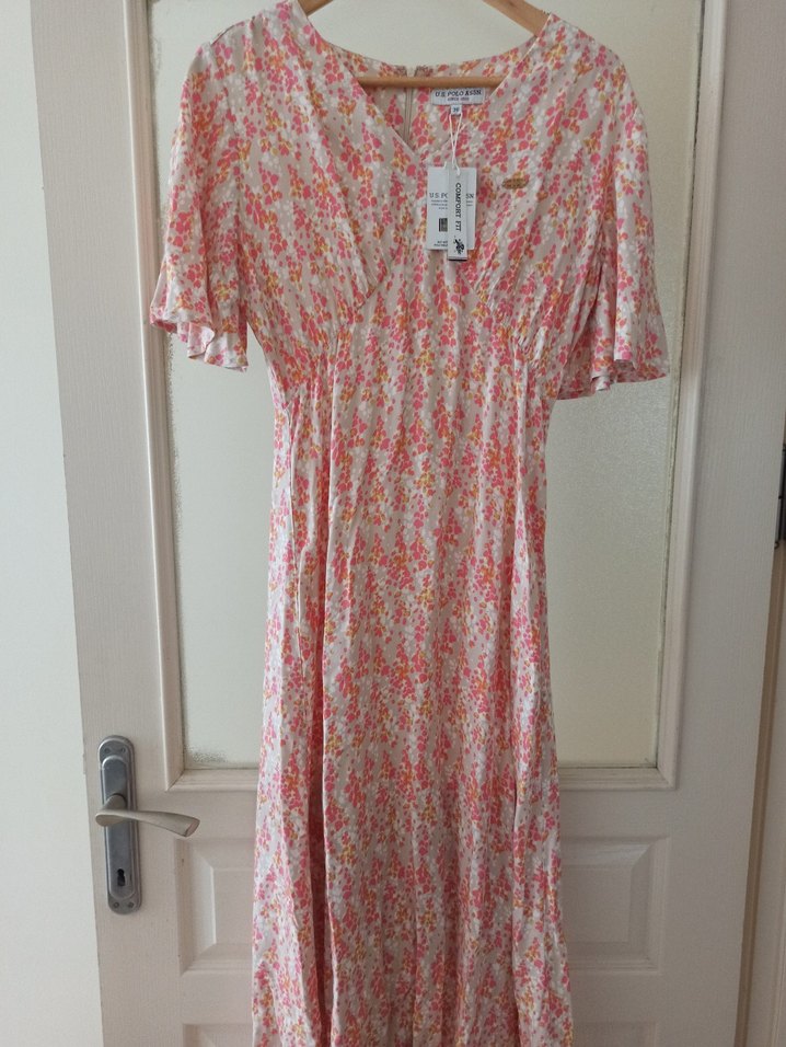 Pembe V Yaka Bohem Uzun Elbise 1 kere giyildi