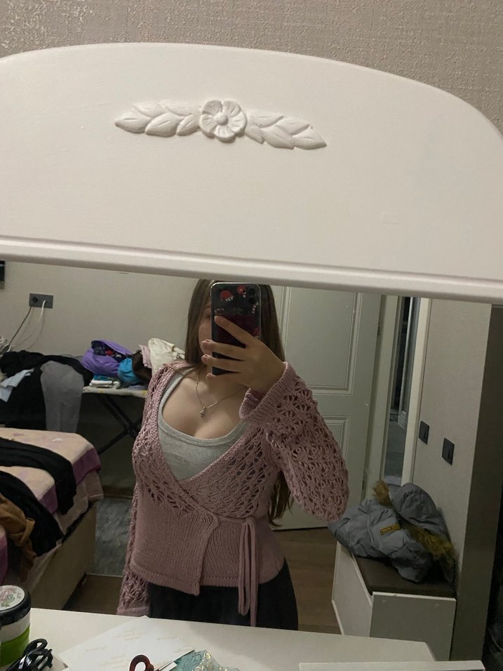 Pembe, V yakalı, uzun kollu, dantel detaylı, normal boy triko, rahat ve şık normcore tarzda günlük kullanım için uygun.