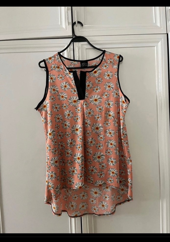 Pembe V Yaka Düğmeli Kolsuz Bluz