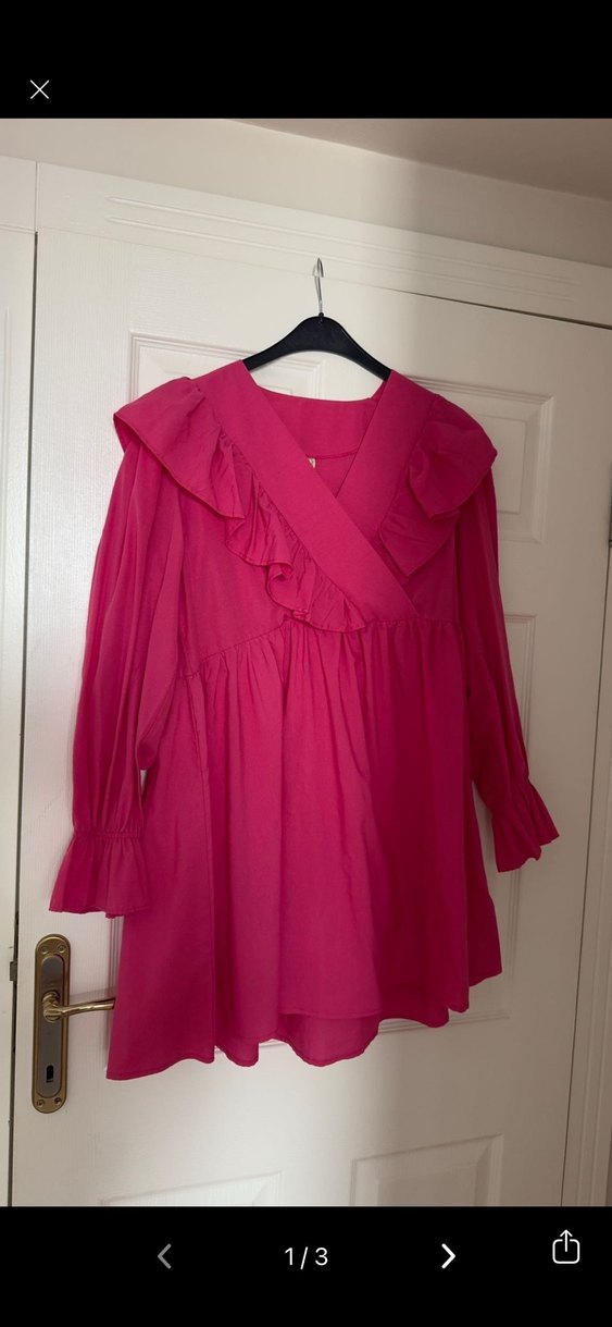 Pembe V Yaka Fırfırlı Kadın Tunik