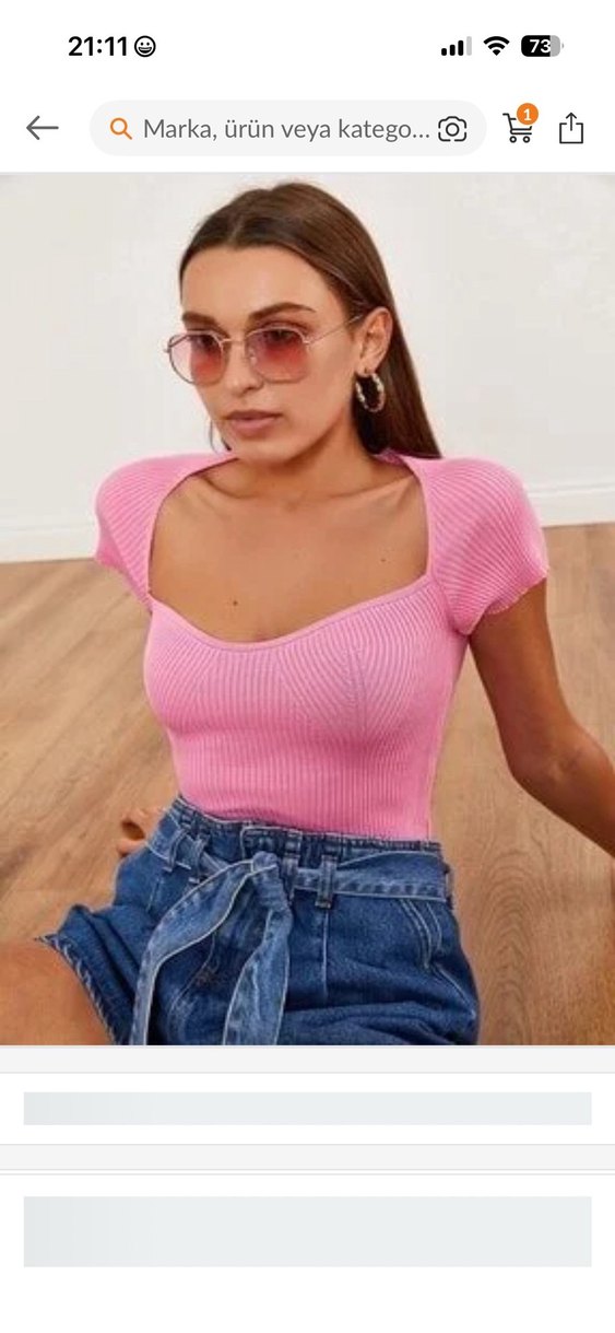 Pembe, V yakalı ve kısa kollu, yumuşak denim kumaştan yapılmış dar kesim crop top. Pastel tonu ve sade tasarımı günlük kullanıma uygun rahat şıklık sunar.