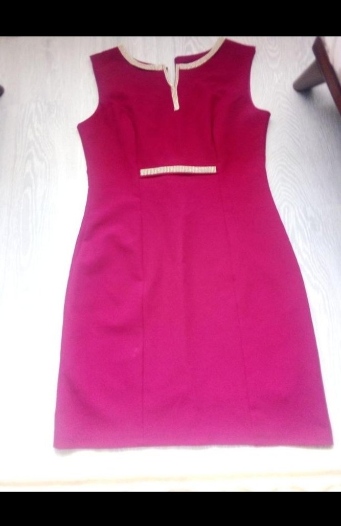 Kolsuz, V yakalı, kemerli pembe midi elbise, modern klasik tarzda ve normal kesimlidir. Günlük kullanıma uygundur. fuşya rengi vardır 1 saat giyildi indirim payı vardır