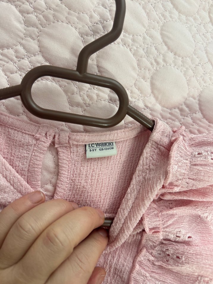 Pembe V Yaka Kısa çocuk elbise