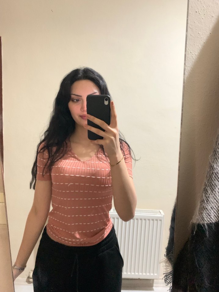 Pastel pembe renkte, V yaka ve kısa kollu, vücuda oturan triko crop top. Günlük kullanıma uygun, rahat ve şık bir parça.