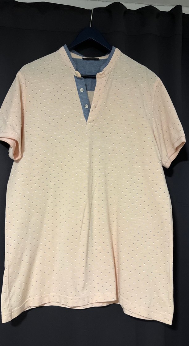 Pembe pamuklu erkek polo tişört, kısa kollu ve düğmeli V yakaya sahiptir. Regular fit ve hafif dokulu deseniyle günlük sokak stili için uygundur.