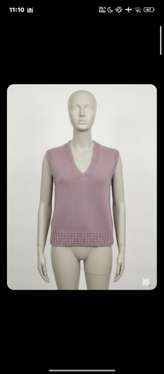 Pastel pembe renkli, V yakalı ve kolsuz kısa örgü süveter. Rahat kesimi ve yumuşak kumaşıyla günlük kullanıma uygundur. el yapımıdır 3 yaş içindir