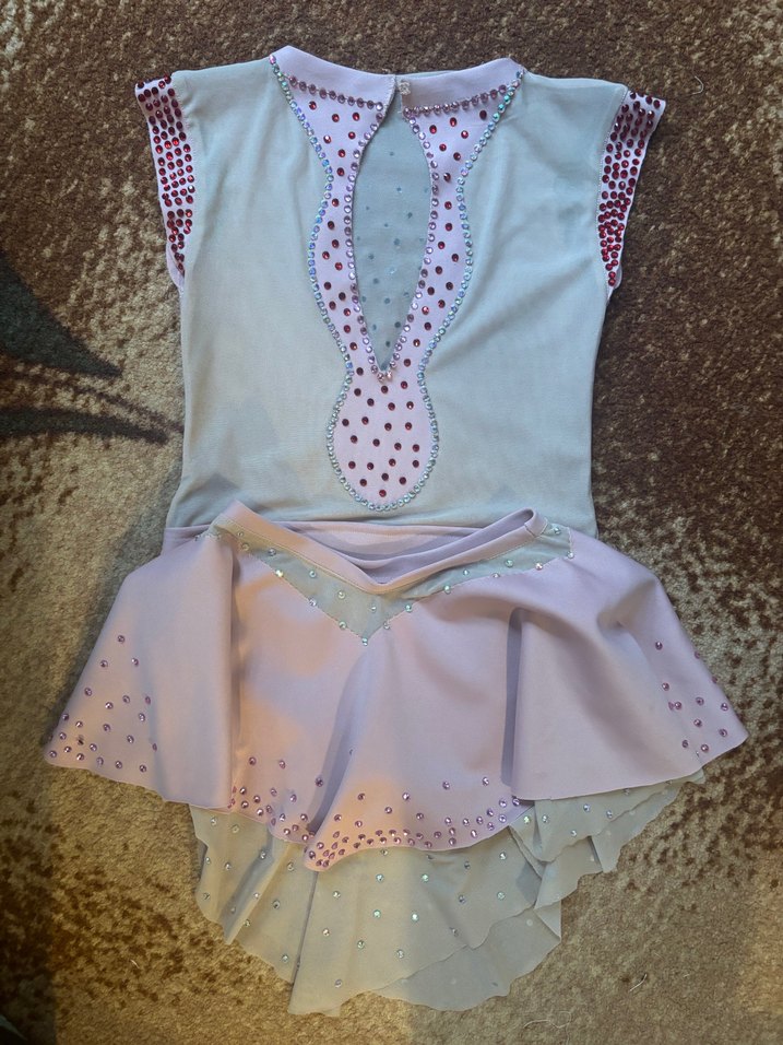 Pembe renkte, V yakalı ve kolsuz, bohem tarzda, vücuda oturan kız elbisesi. Yumuşak sentetik kumaştan, fırfır ve zarif süslemeler içerir. Gösteri kostümü 7-8 yaş özel dikim
