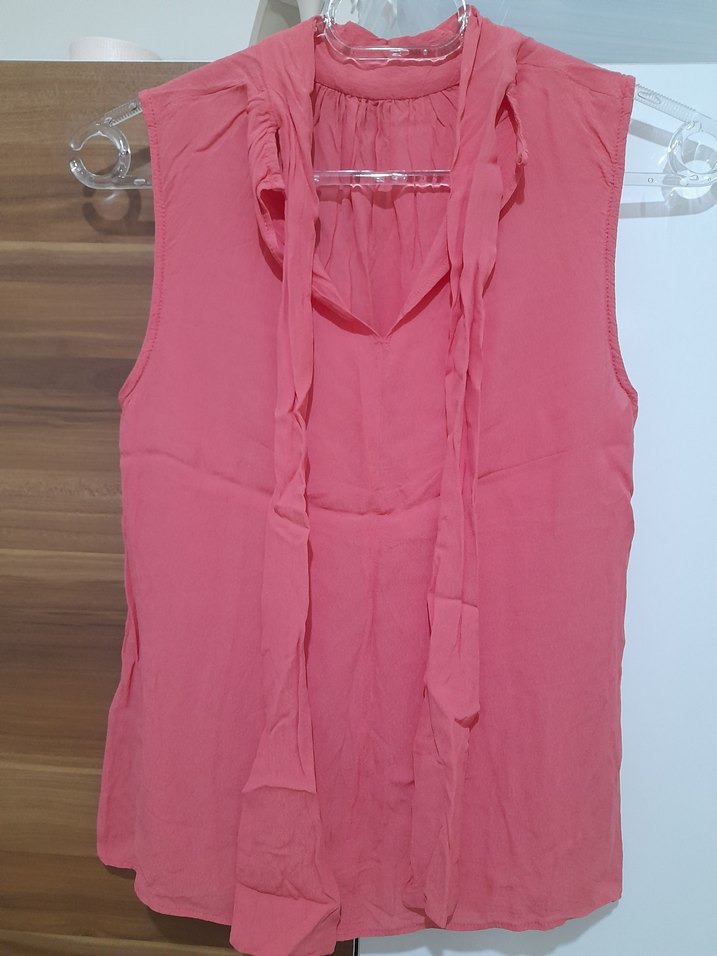 V yaka, kolsuz ve drapeli tasarıma sahip, salaş kesim pembe bluz. İpeksi kumaştan, günlük kullanım için uygun.