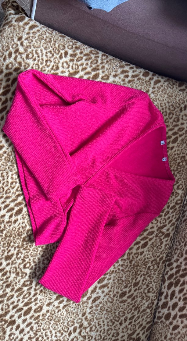 Pembe renkli, örgü dokulu, uzun kollu ve V yaka kadın kazak. Rahat ve bol kesimiyle günlük kullanıma uygundur.