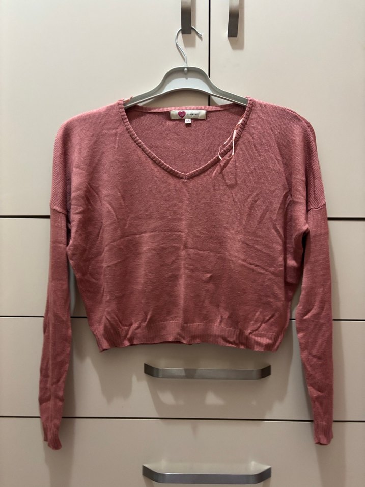 Pembe V Yaka Örgü Kadın Kazak