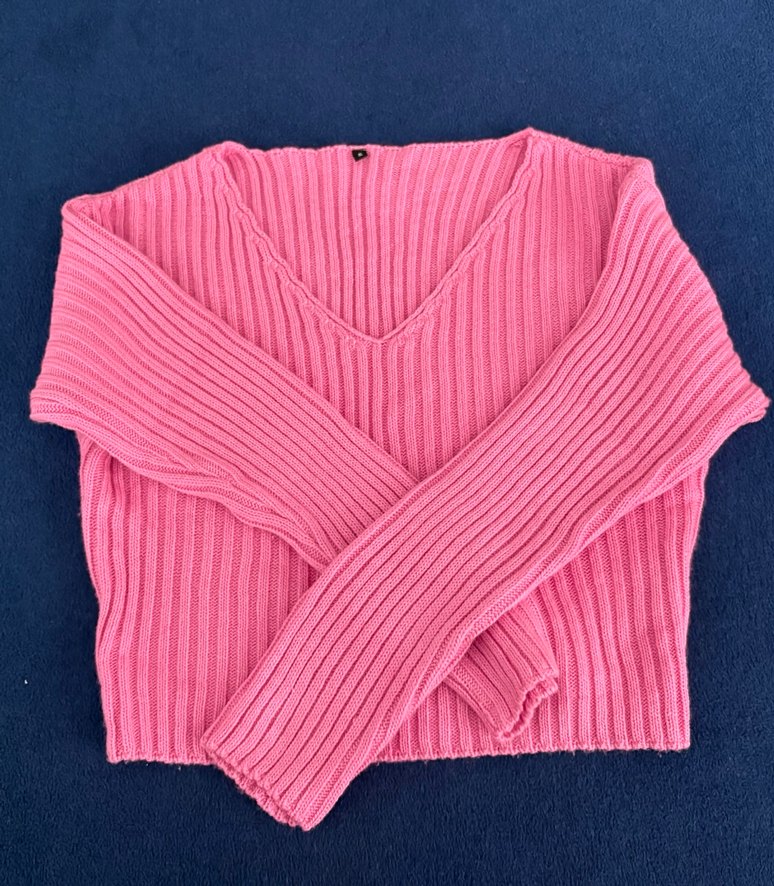 Pembe renkli, V yaka ve uzun kollu örgü kadın kazak, rahat ve günlük kullanıma uygun dar kesimdir. Milla marka 1 defa giyildi.