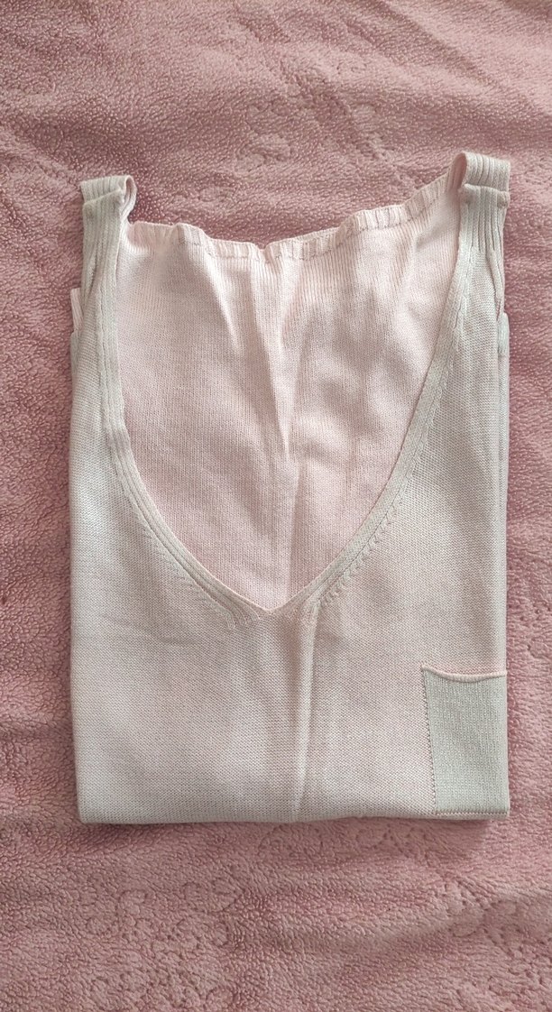 sadece dolapta katlanıp durduğu için kırışık fakat yepyeni tertemiz bir ürün..sıcak tutacak hafif parlak yansımalı çok güzel iç atlet olarak veya gömlek altına çok şık duracak bir ürün.S M L her bedene uyumlu.pembe yansımalı ton
