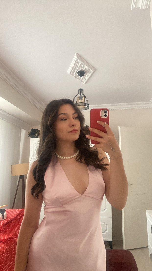 doğum günü. için aldım markası zara M bedendir. V yaka, parlak ve pastel pembe renkli, kolsuz, midi uzunlukta, vücuda oturan kadın gece elbisesi. Romantik akşamlar için uygundur.