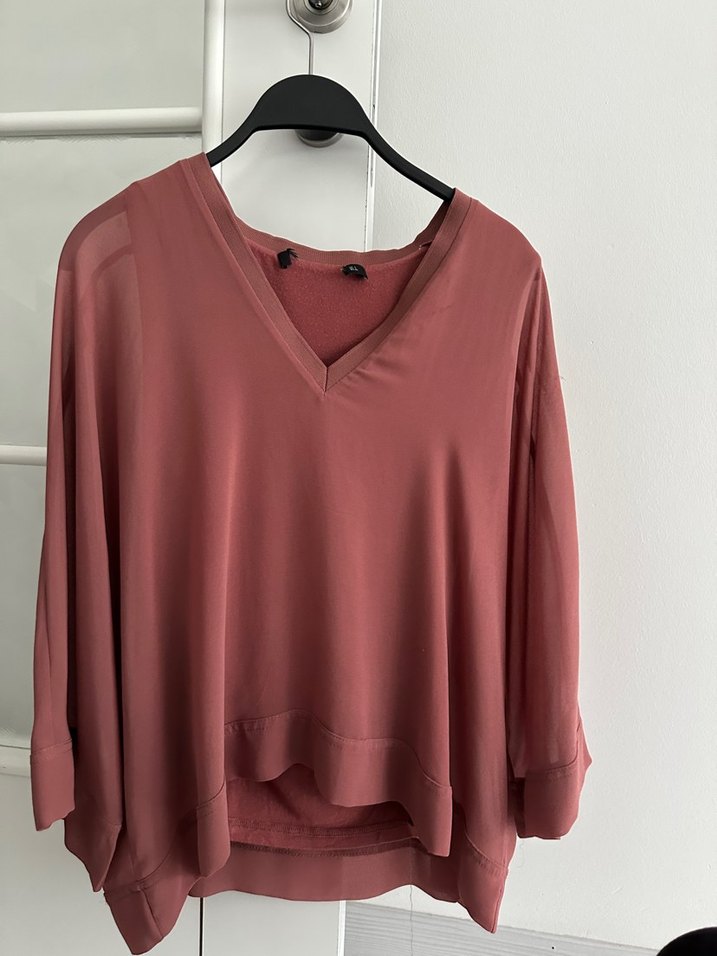 Pembe renkte, V yaka ve uzun kollu salaş kesim kadın bluz. İpek gibi kumaştan, drapeli görünüm sunar, günlük kullanım için uygundur. ✨