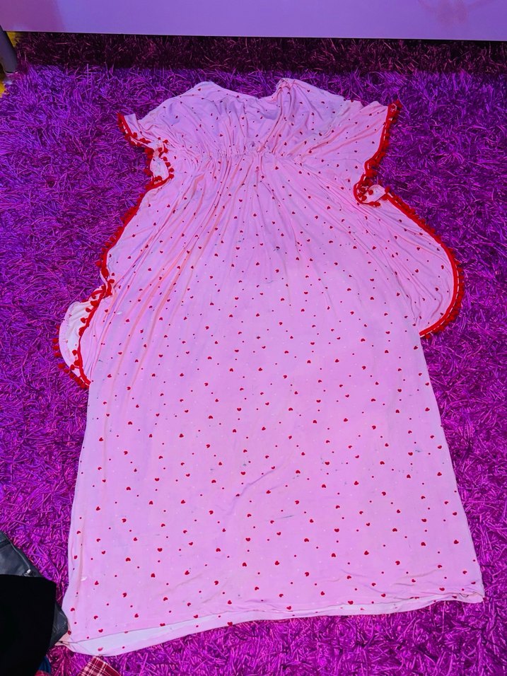 Pembe pastel renkte, bağlama desenli, salaş kesim uzun kadın elbisesi. Drapeli, V yaka ve kolsuz tasarıma sahip, bohem düğün için uygundur.