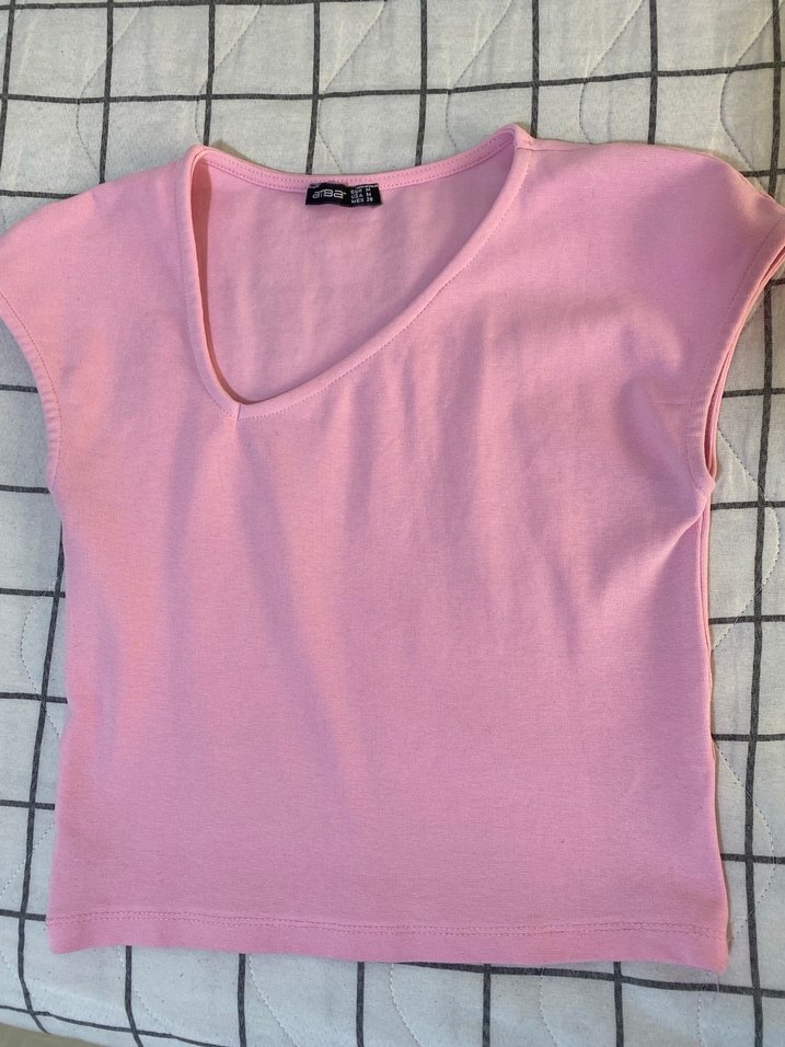 Pembe V yaka Sıfır kol Crop/Tişört
