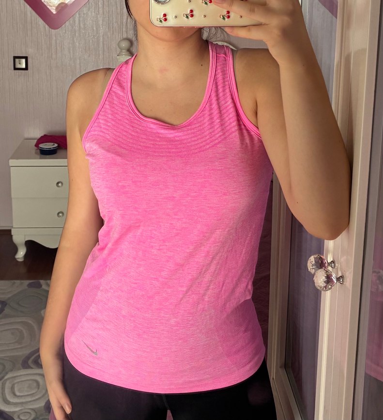Pembe, v yaka, kolsuz ve fitted kesime sahip spor atlet. Yumuşak sentetik kumaştan üretilmiştir, sportif ve günlük kombinlere uygundur. orijinal nike.