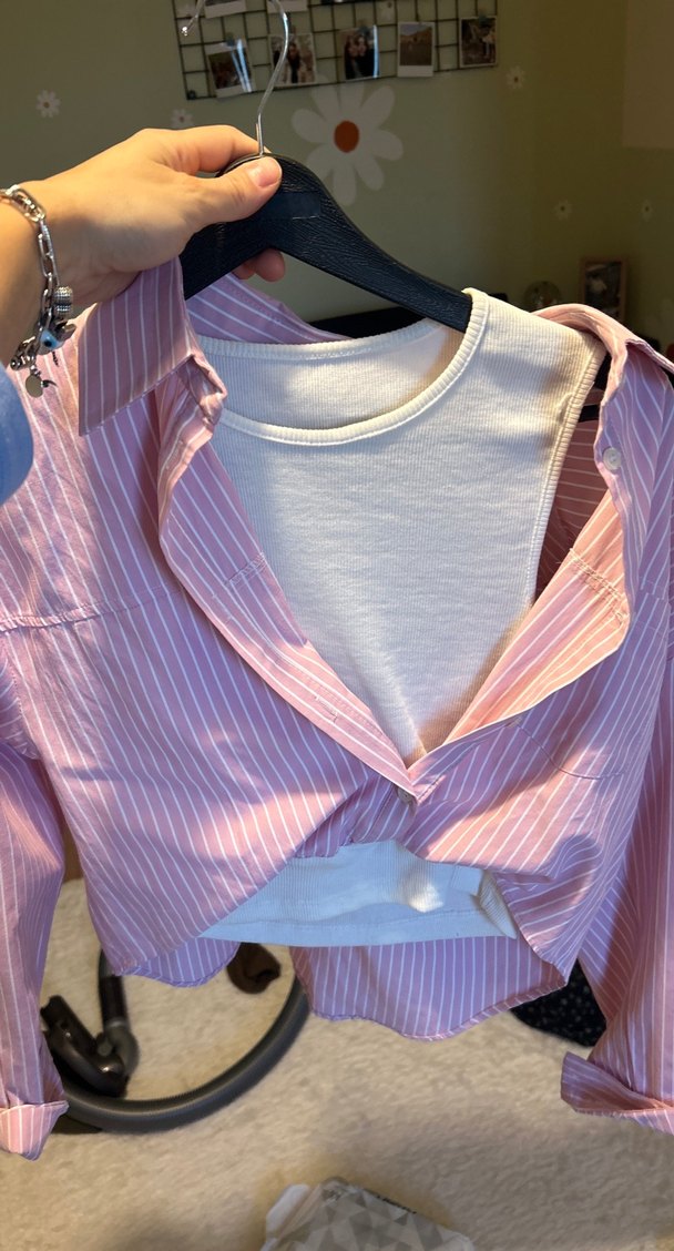 Pembe, V yaka ve düğmeli uzun kollu, hafif sentetik kumaştan yapılmış dar kesim gömlek. Rahat günlük sokak stili için uygundur.