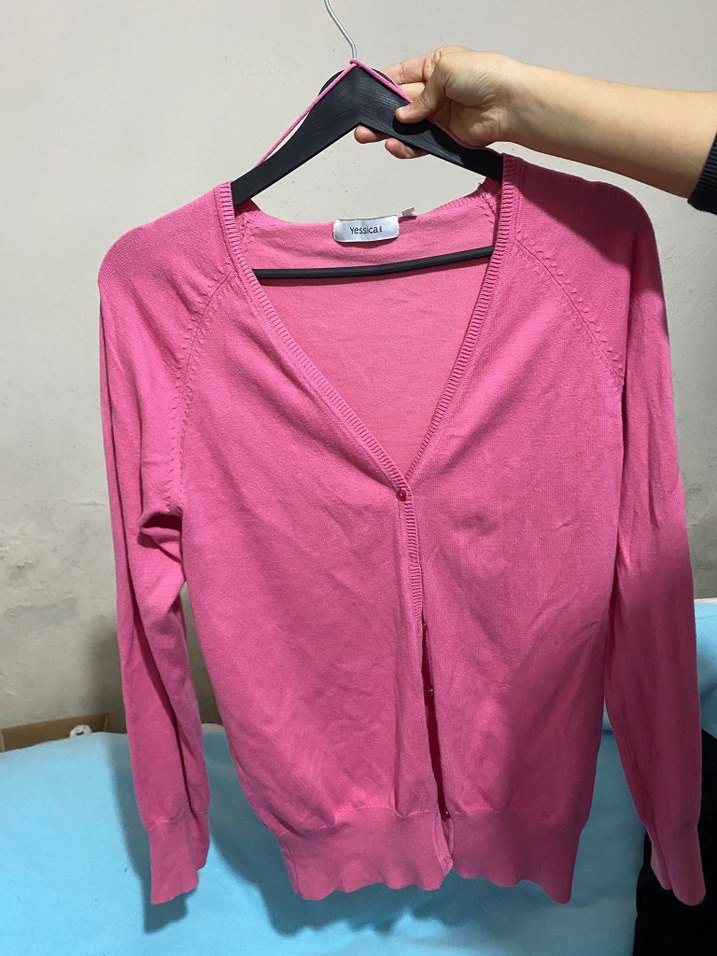 Pamuk kumaştan, v yaka ve uzun kollu, pastel pembe renkli, sade ve rahat kesime sahip kadın hırka. Günlük kullanıma uygundur.