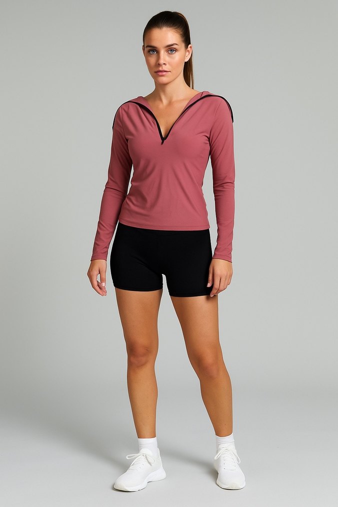Pembe V Yaka Uzun Kollu Mini Spor Üst