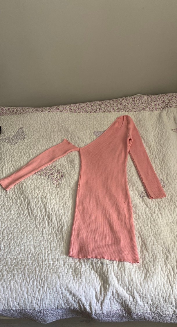Pembe V Yaka Uzun Kollu Triko Elbise