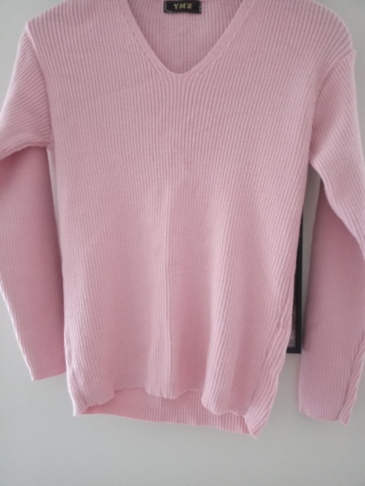 Pastel pembe renkte, V yaka ve uzun kollu, triko dokulu kadın kazak. Rahat kesimi ve normal boyu ile günlük kullanıma uygundur. diğerleri de sayfamda bakabilirsiniz