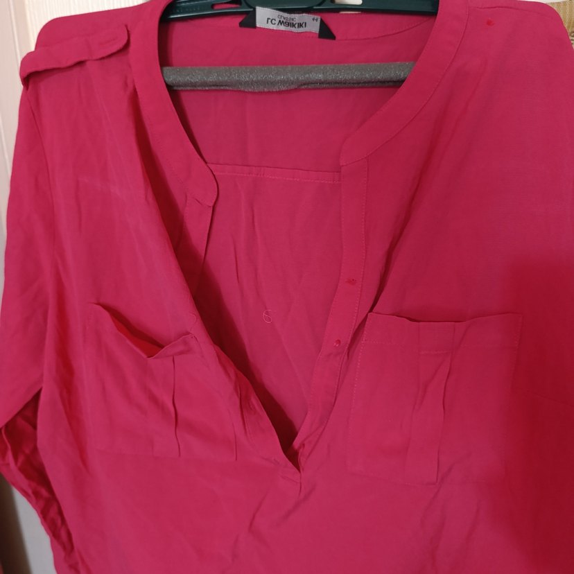 İpek gibi pembe kumaştan, V yakalı ve düğmeli ön kısmı olan kolsuz, bol kesim midi boy bluz. Minimalist bohem tarzda, parlak dokusu ile öne çıkar. düğmeleri eksik olduğu için uygun fiyeta koydum