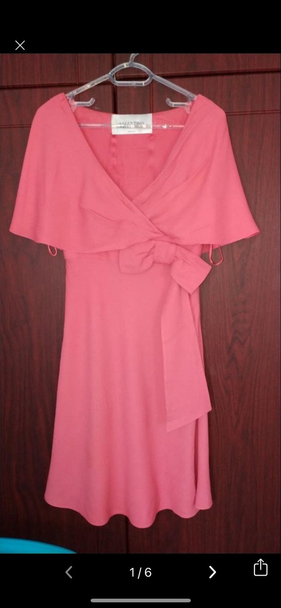 Pembe renk, V yakalı, pelerin görünümlü elbise Lekeli kısmın yakından ve uzaktan görünüşü bu şekildedir
