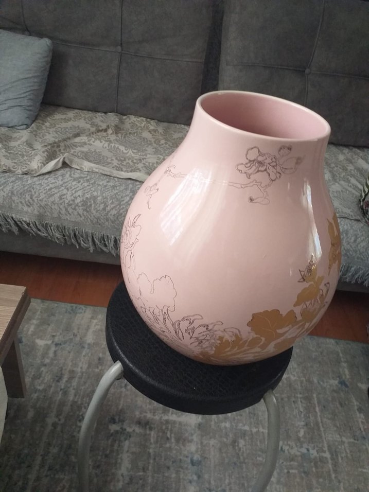 Büyük Boy Pembe ve Altın Desenli Vazo