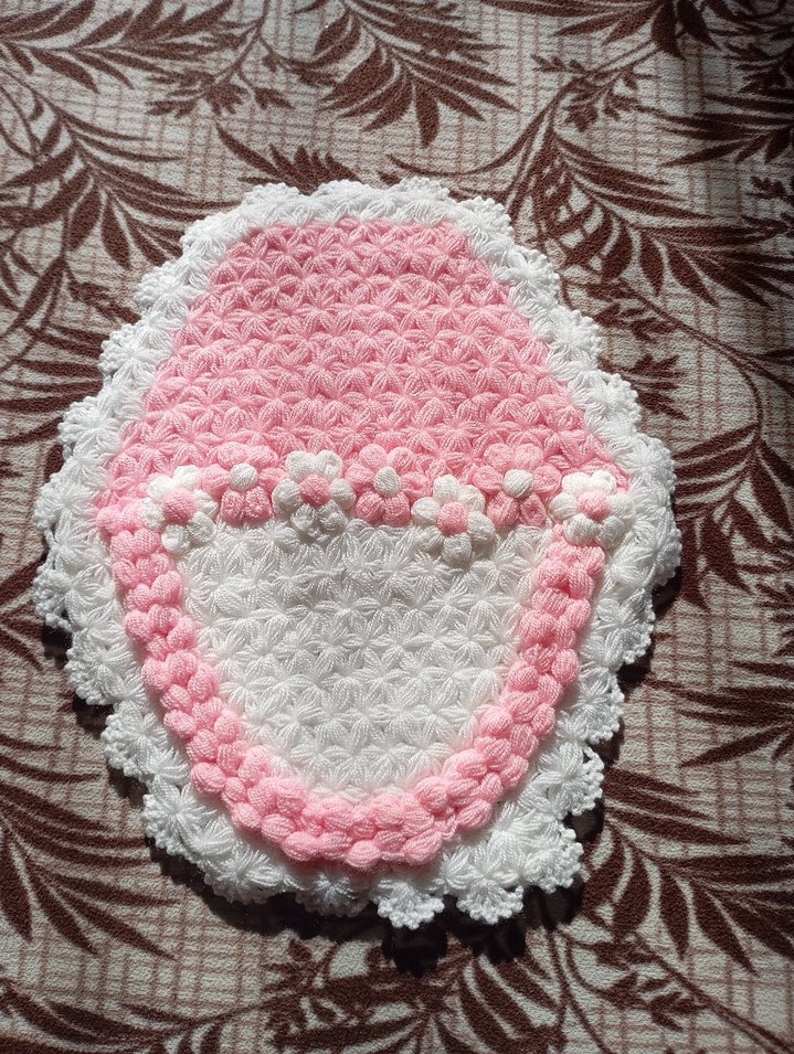 Pastel pembe ve beyaz renklerde, çiçek desenli dokusu olan yumuşak ve dekoratif kenarlı banyo süngeri.