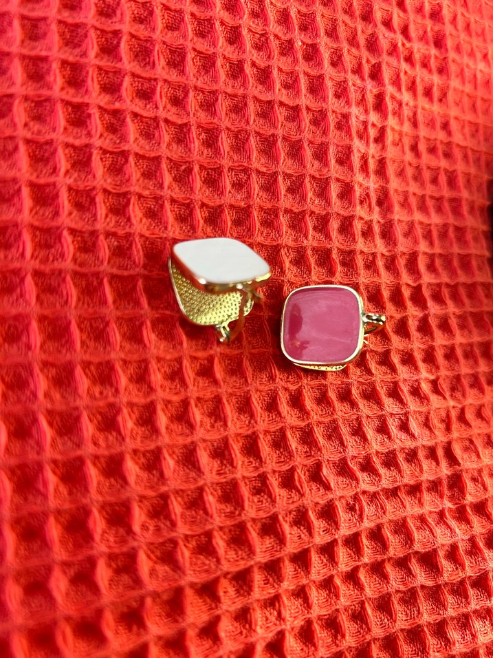 Parizyen esintili, parlak pembe ve beyaz düğmeli mini küpeler. Kısa uzunlukta, bohem tarzda, romantik buluşmalar için uygun. ❤️