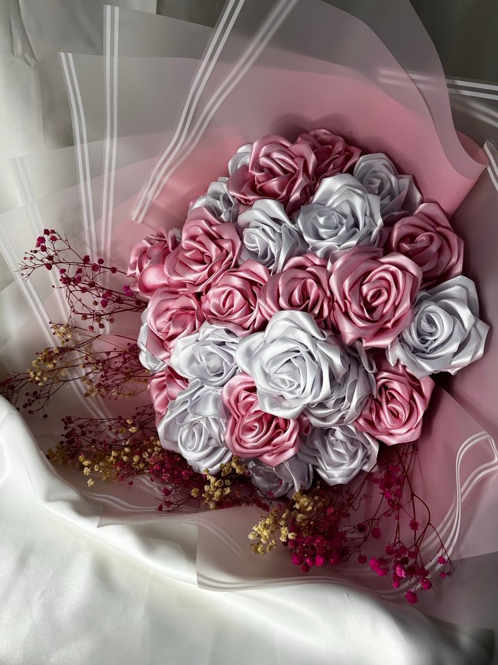 Pembe ve beyaz solmayan 30’lu Gül buketi. Özel siparişler için instagram: loomand.bloom