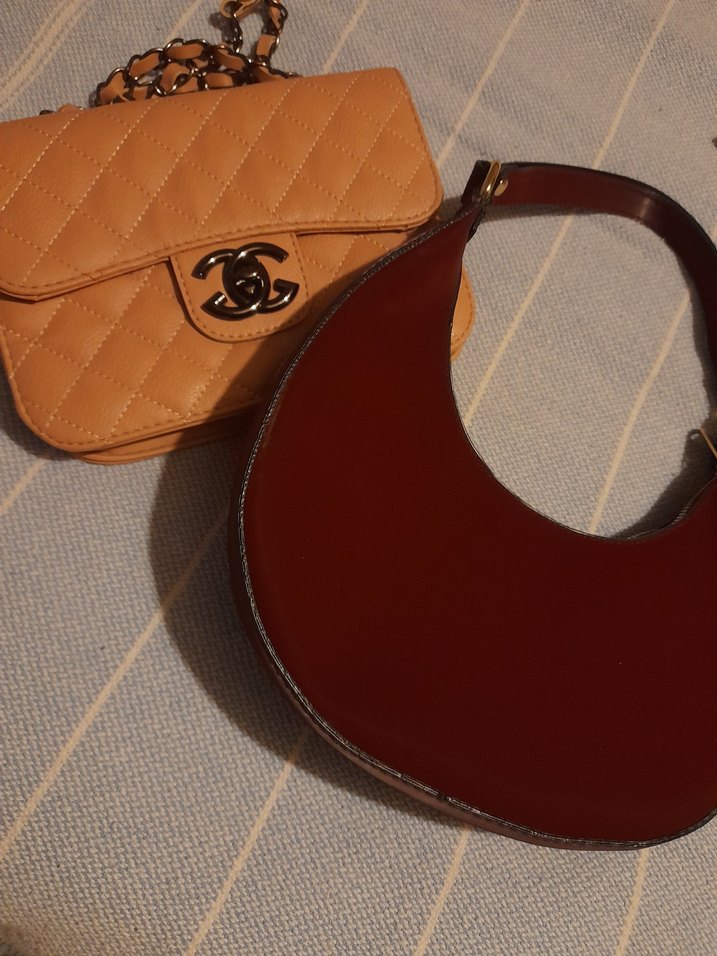 Pembe ve Bordo İki Adet Deri Kadın Omuz Çantası