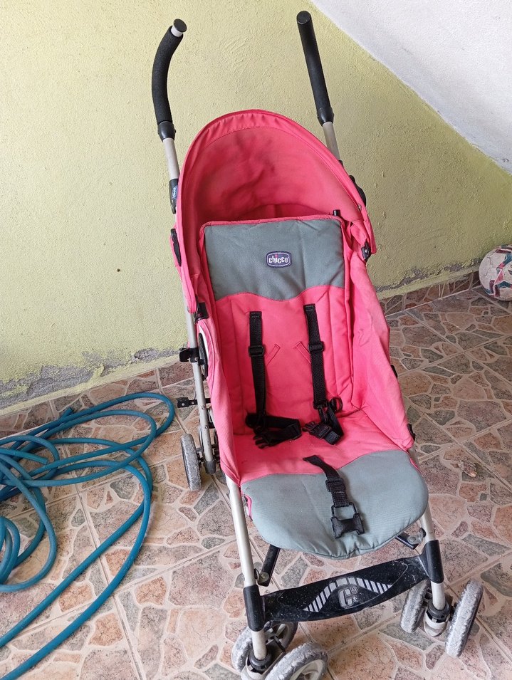 Pembe ve gri Chicco bebek arabası